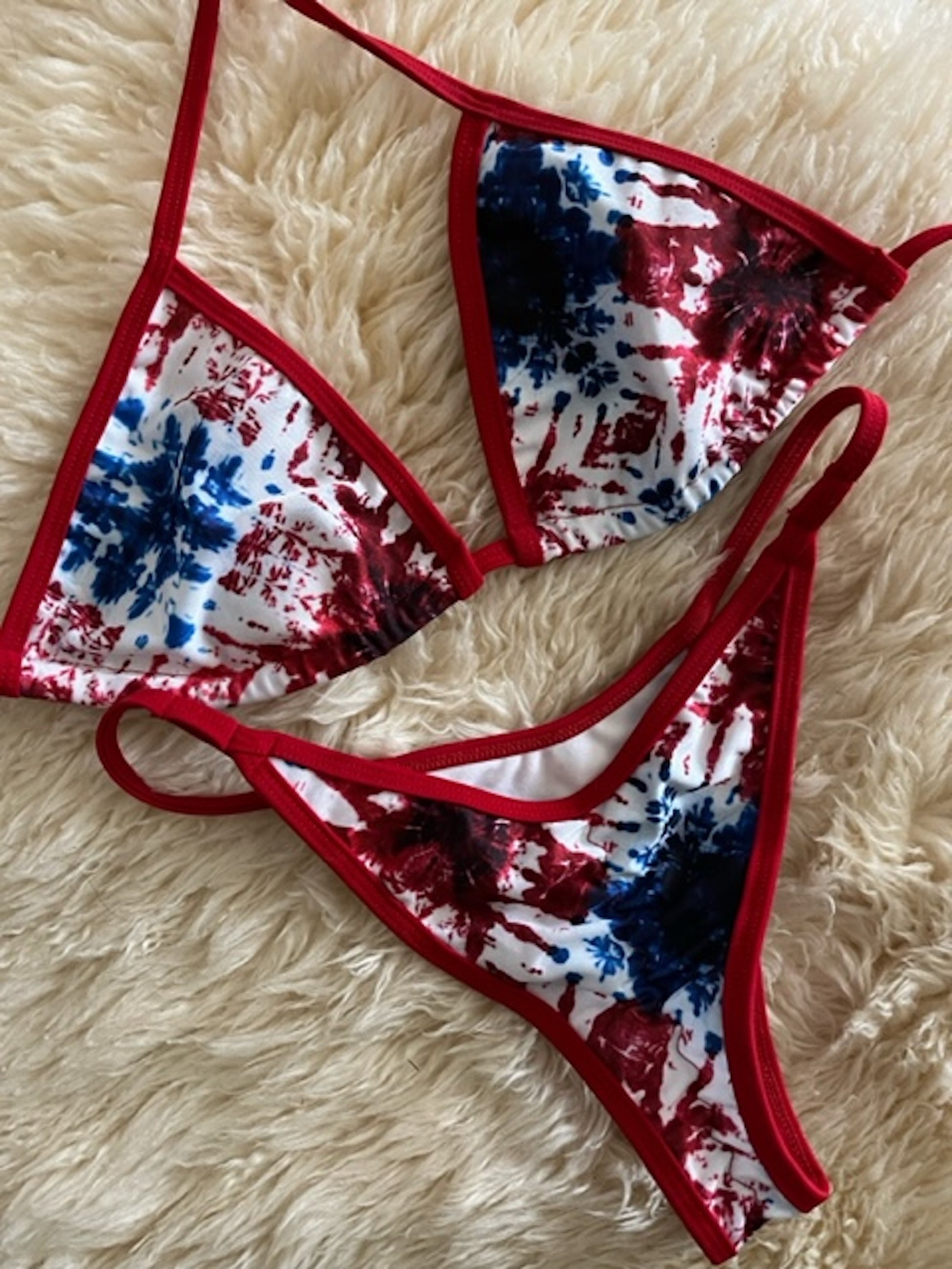 Red, White and Blue print, perfect for posing practice, send progress pictures to your coach or just want to look cute by the pool with minimum tan line.