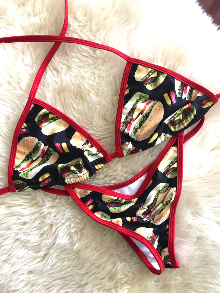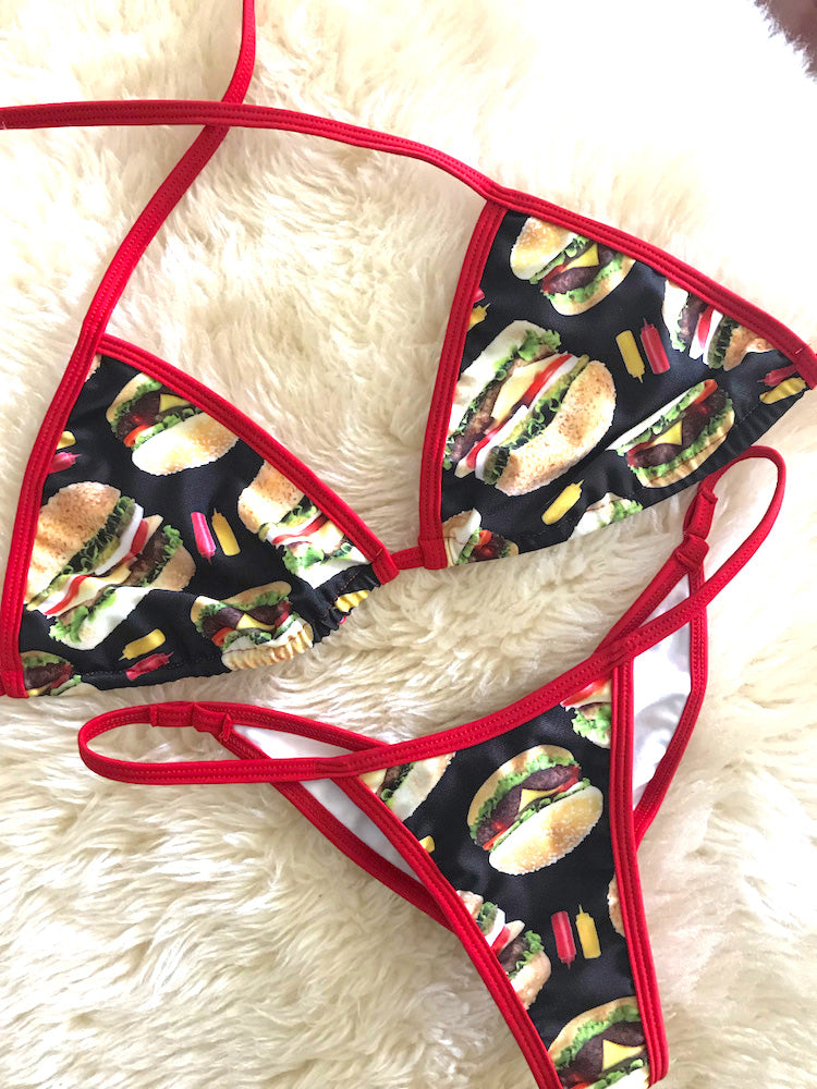What a fun way to temporarily satisfy your cravings for Burgers, perfect for posing practice, send progress pictures to your coach or just want to look cute by the pool with minimum tan line.