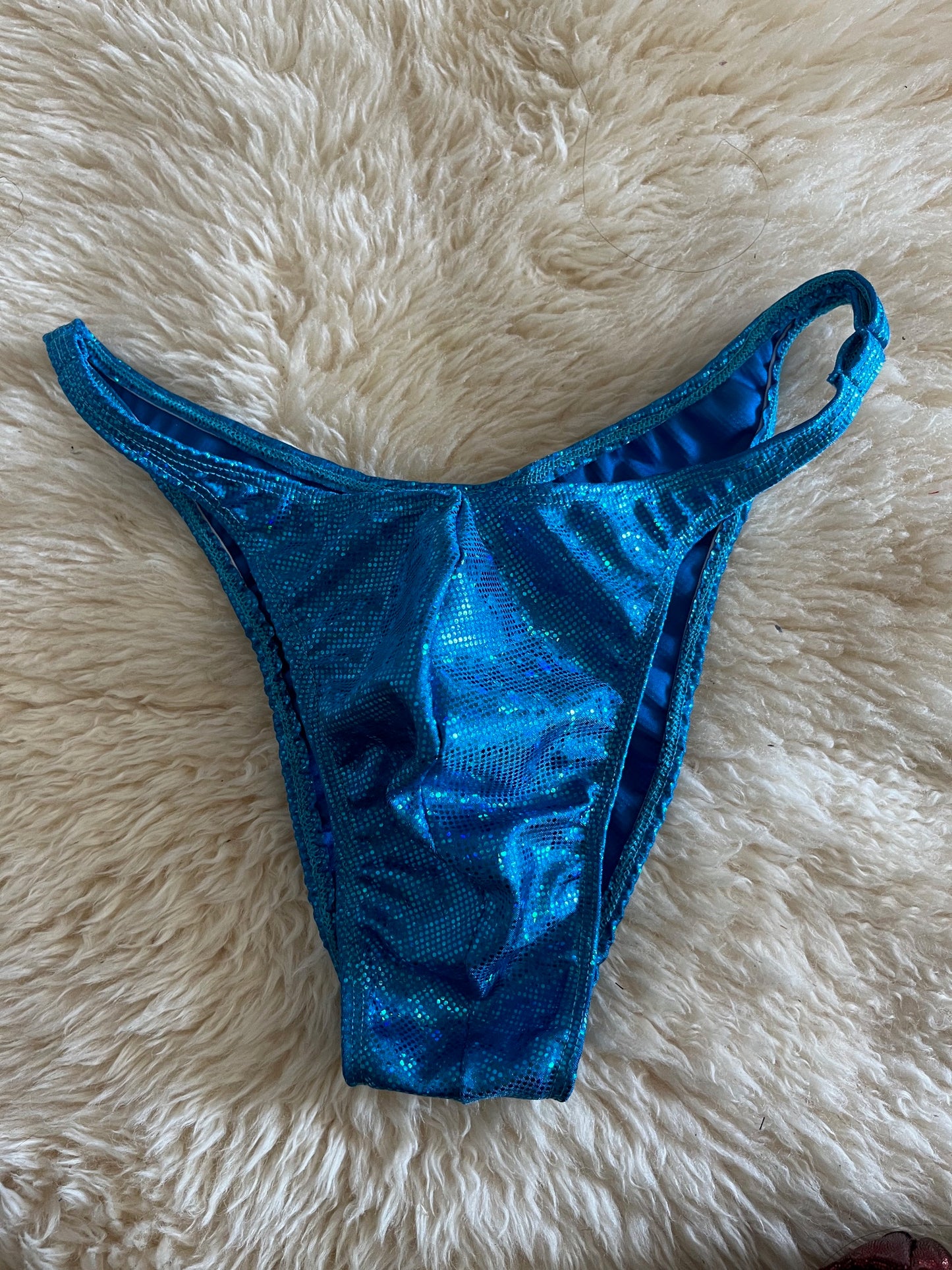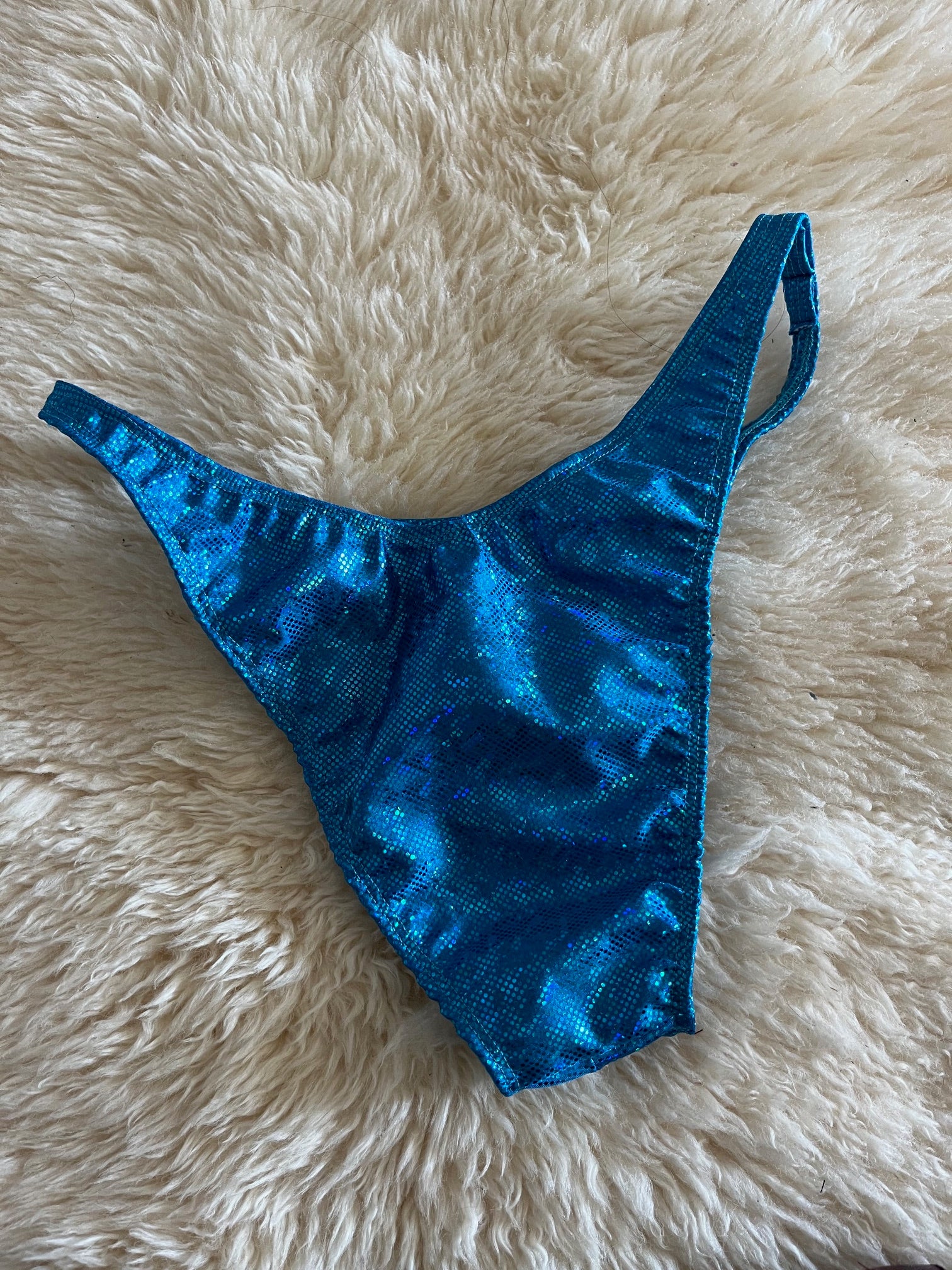 Shatterglass Turquoise fabric, 40% coverage on the back, 3/4" wide side straps.